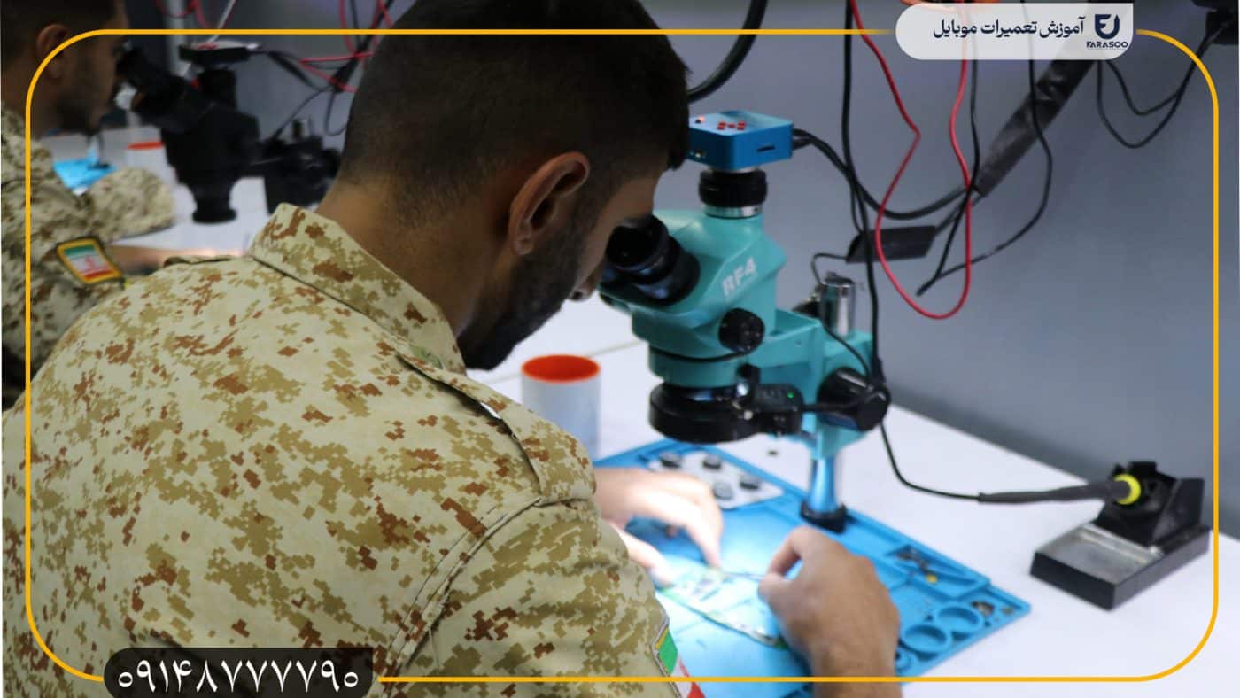 یکی از ویژگیهای مهم این دوره، تمرکز بر آموزش تخصصی تعمیرات موبایل بهصورت کاملاً عملی است. هنرجویان در طول دوره با گوشیهای واقعی از برندهای مطرح مانند Samsung، Xiaomi و Apple کار میکنند و با مشکلات واقعی بازار آشنا میشوند. همچنین بخش تعمیرات نرمافزاری شامل فلش، ترمیم سریال، رفع ارورهای سیستمی و کار با ابزارهای تخصصی بهطور کامل آموزش داده میشود تا کارآموز پس از پایان دوره آمادگی کامل ورود به بازار کار را داشته باشد.